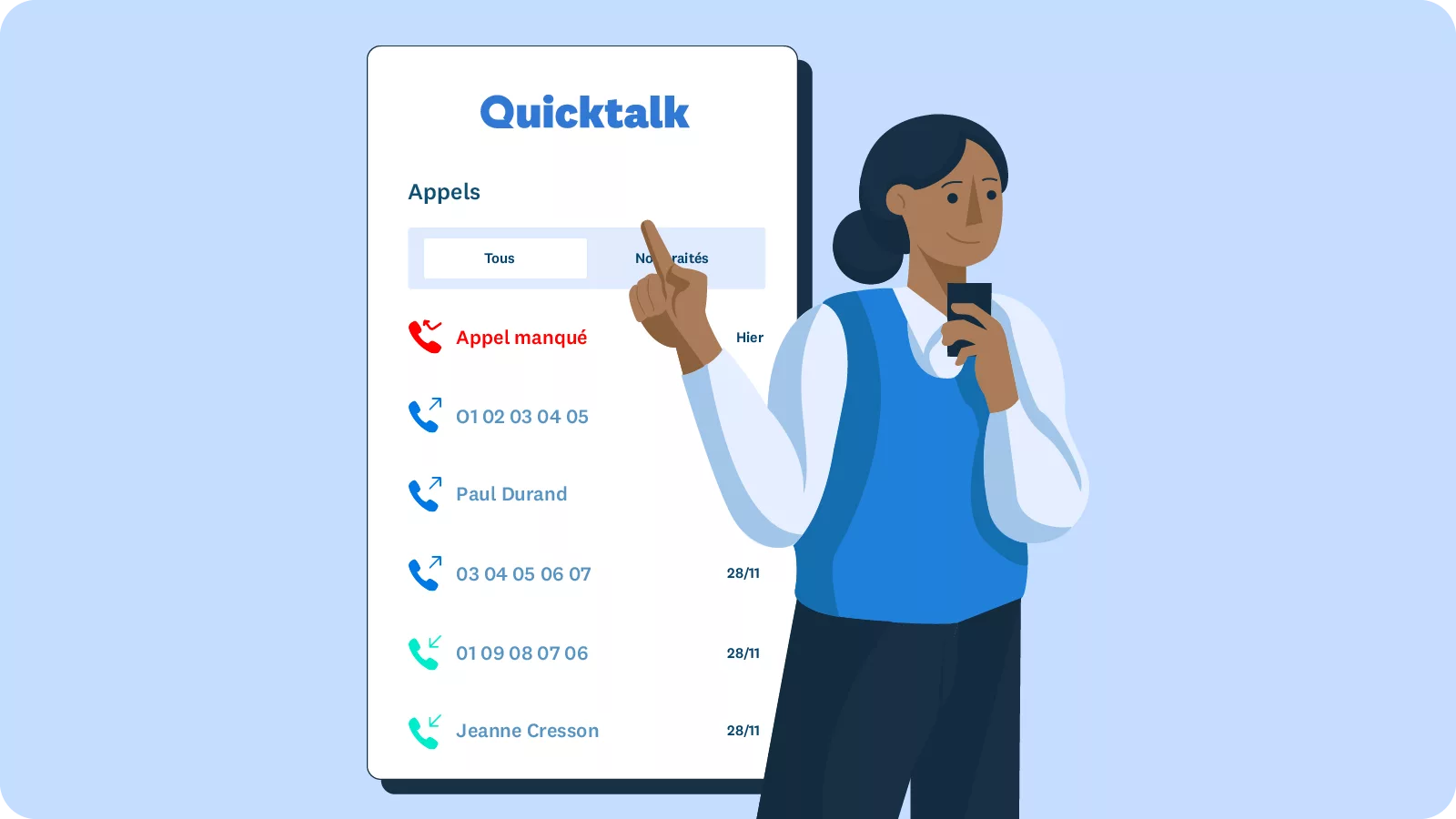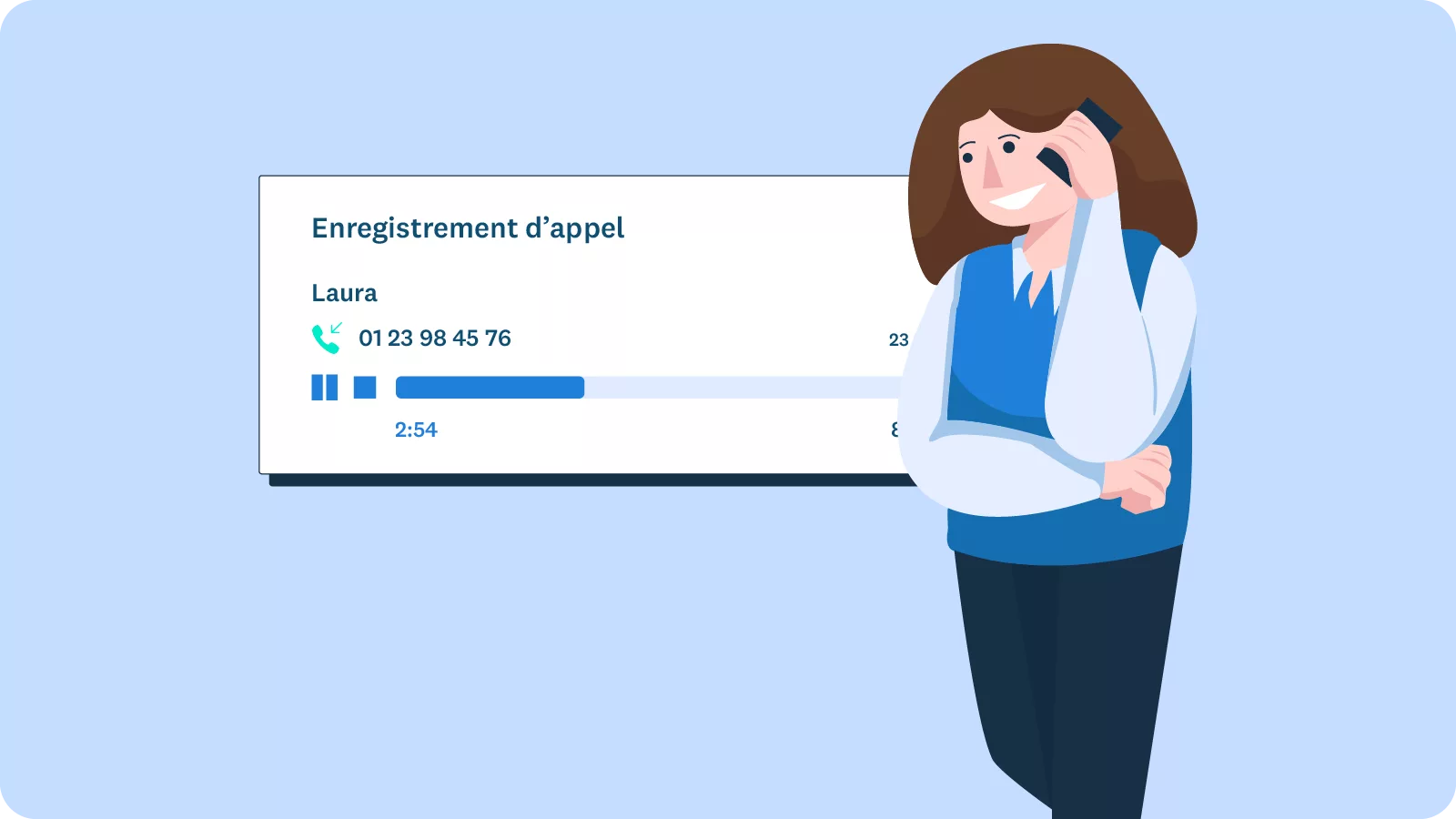 Encore une fonctionnalité à forte valeur ajoutée pour la gestion des appels professionnels et que vous ne retrouverez pas si vous n'utilisez pas une téléphonie pro. La plupart des standards pro d'entreprise vous permettent d'enregistrer les appels et de les réécouter d'un simple clic depuis le journal d'appel sur votre ordinateur ou l'application mobile.