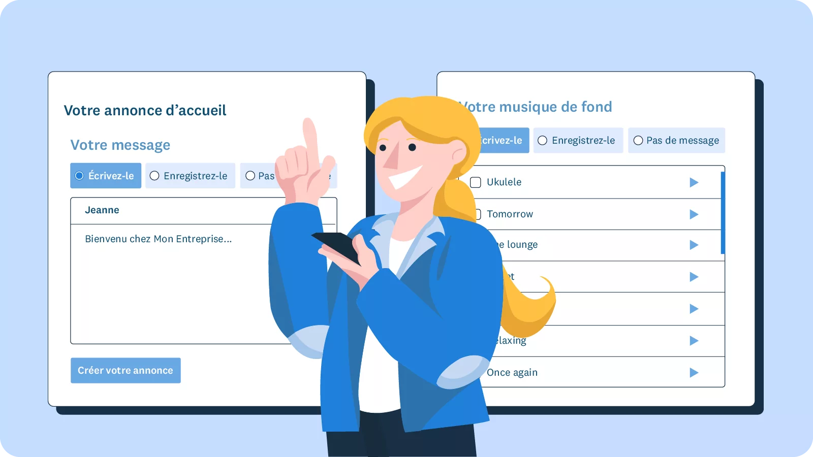 “Bonjour et bienvenue chez MonEntreprise, ne quittez pas nous allons prendre votre appel”