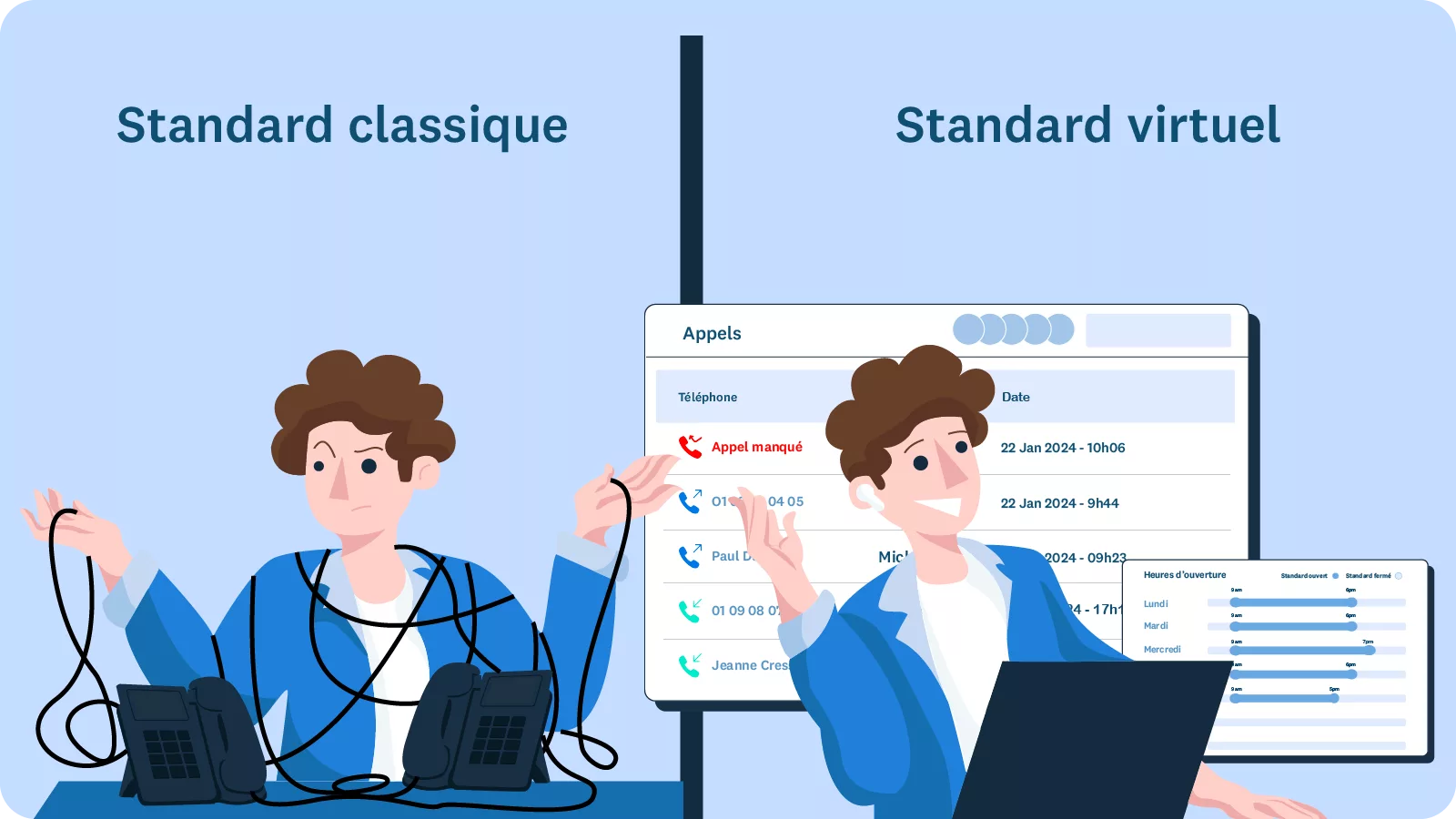 Les horaires d'un standard téléphonique sont simplement les horaires pendant lesquels vous assurez une permanence téléphonique, c'est-à-dire lorsque quelqu'un de votre entreprise peut répondre aux appels. Vous avez donc vos horaires d'ouverture et vos horaires de fermeture, quand le standard est fermé (la nuit par exemple). Il suffit donc de créer les plages d'ouvertures et d'indiquer quelles personnes de l'entreprise auront la charge de réceptionner les appels entrants pendant ces heures d'ouverture, et de créer la plage de fermeture.